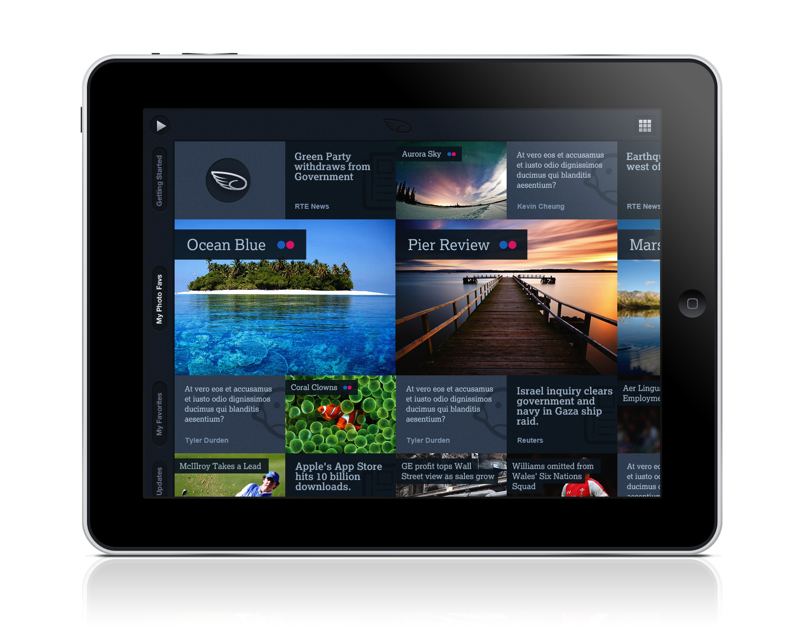 The Lite version of StreamGlider for iPad lets you define a limited number of streams and elements. It has ads displayed either at the bottom of the screen or as interstitials.